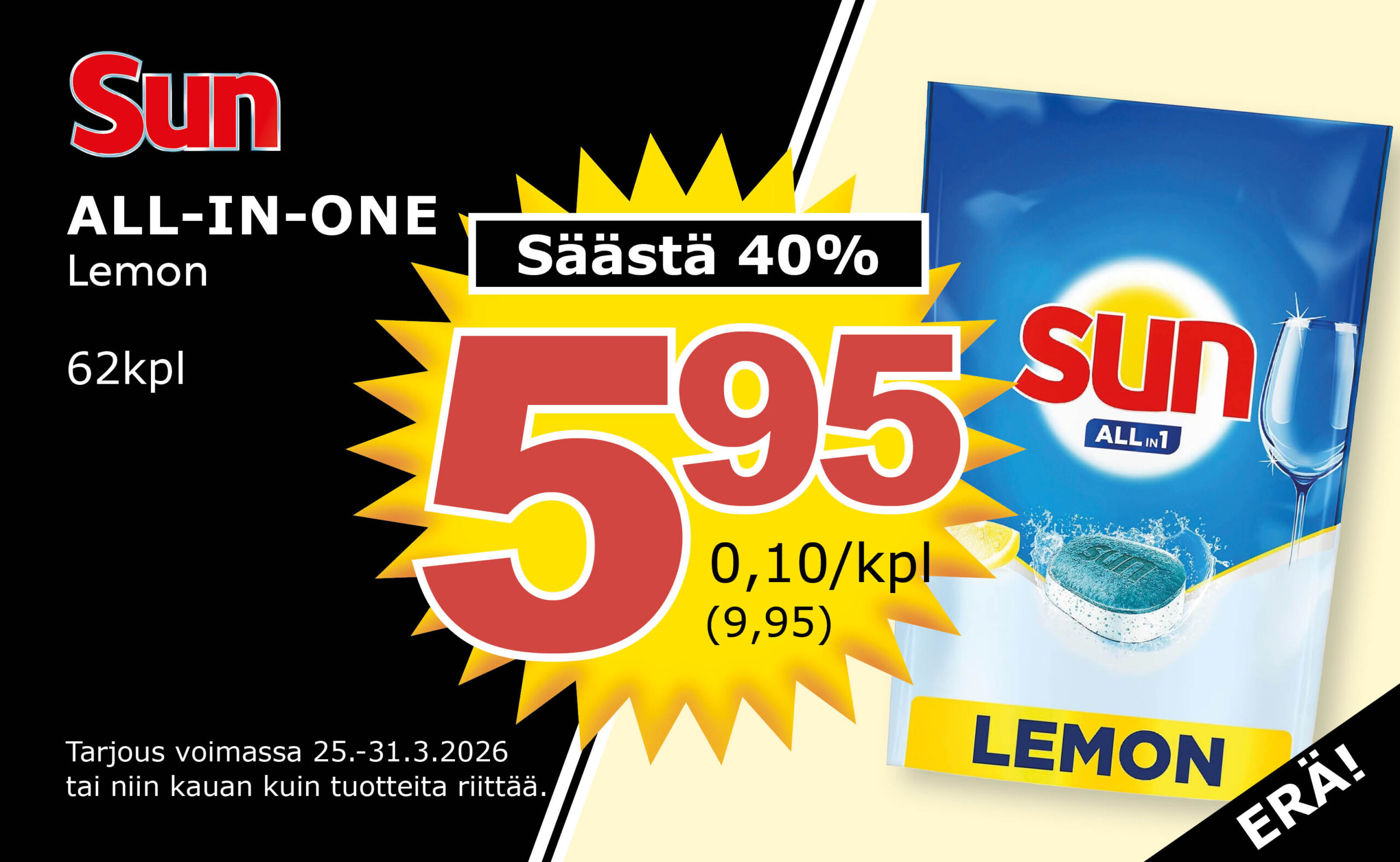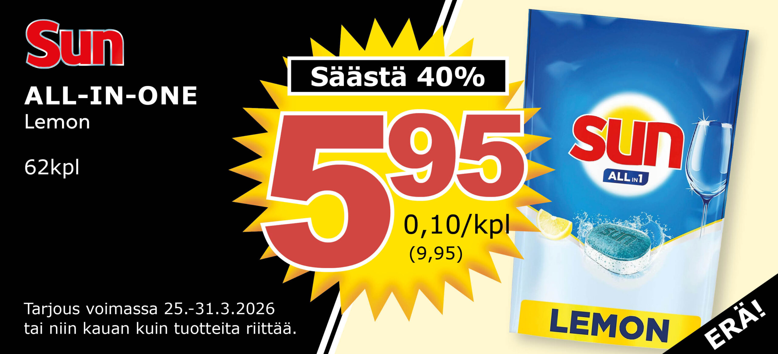 Ostamalla vähintään 40€ saat -10% ostostesi loppusummasta tilatessasi verkkokaupasta.
