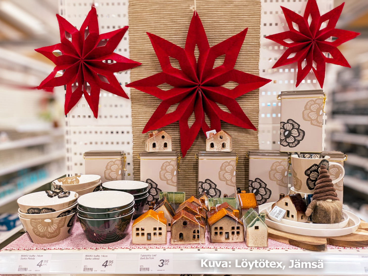 Kauniin jouluinen tunnelma on vallannut myymälämme.