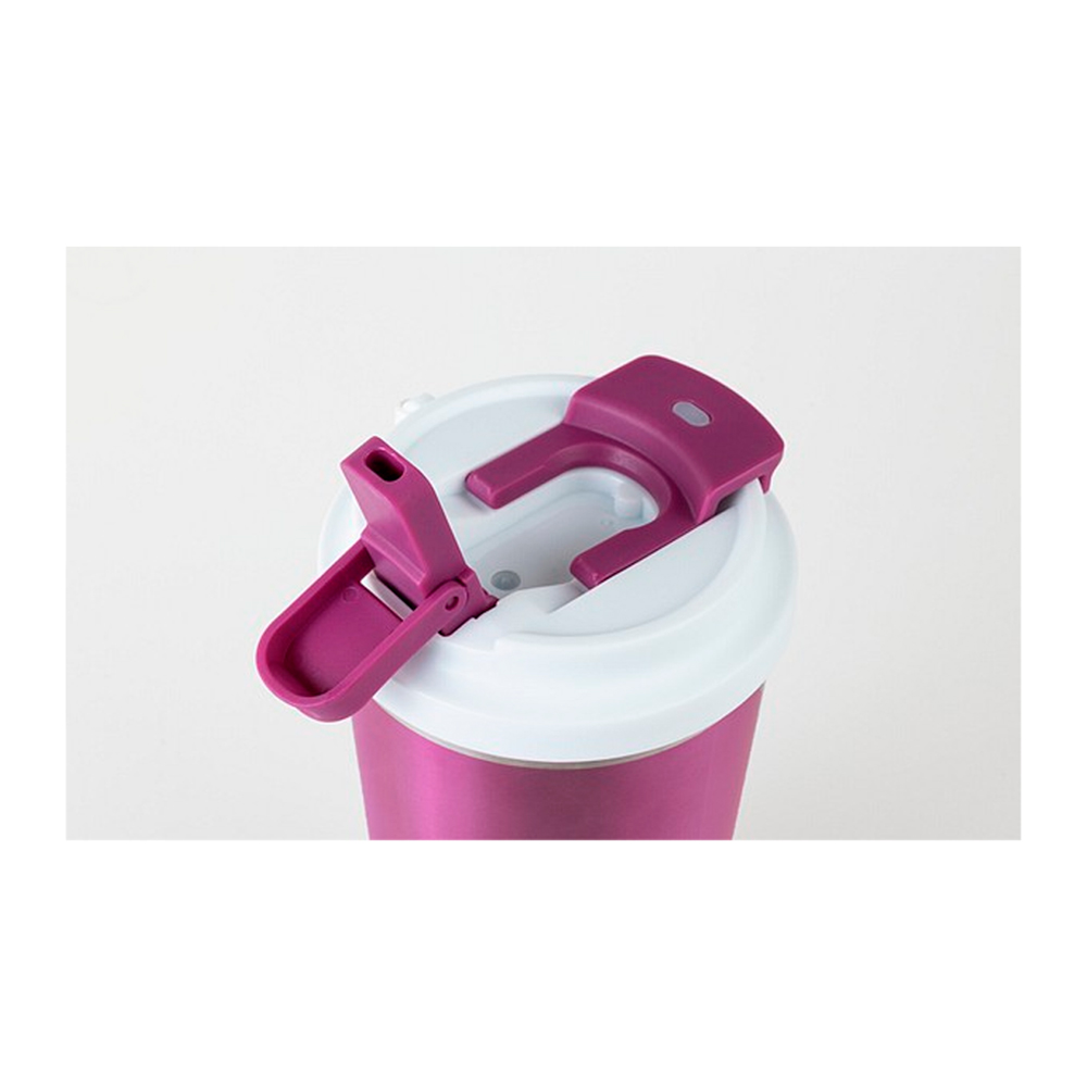 Tyylikäs terästermosmuki, tilavuus 0,56 L. Sopiva muki tien päälle tai toimistoon! Juoma pysyy mukissa kylmänä tai kuumana pitkän aikaa. Näppärä korkki, lisäksi mukana pieni ripustuslenkki. Kaunis Roosa nauha -teemaan sopiva pinkki sävy. Materiaali teräs.
