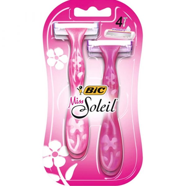 Pidä ihostasi huolta Bic Miss Soleil -höylien avulla. Pakkaukseen sisältyy 4 kappaletta kolmeteräisiä höyliä, joissa on voidenauha.