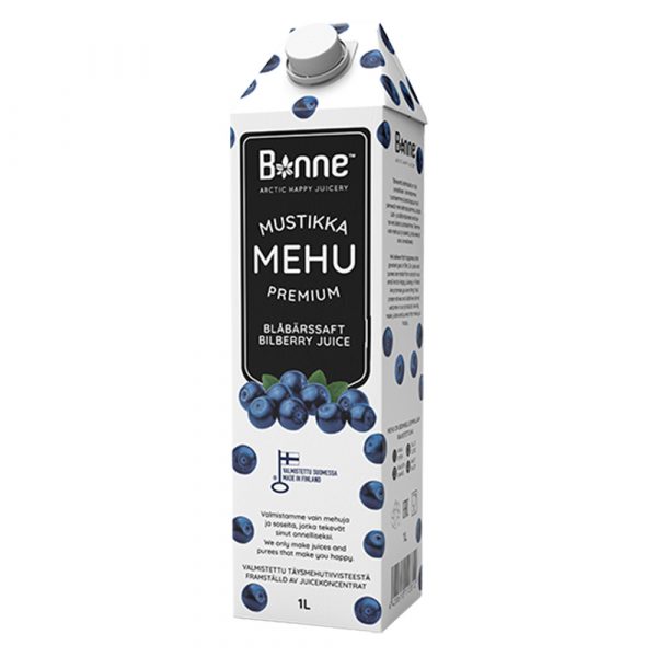 Bonne Premium Mustikkamehu sammuttaa janon ilman lisäaineita ja säilöntäaineita. Se on valmistettu suomalaisesta mustikkatäysmehusta ja raikkaasta lähdevedestä.