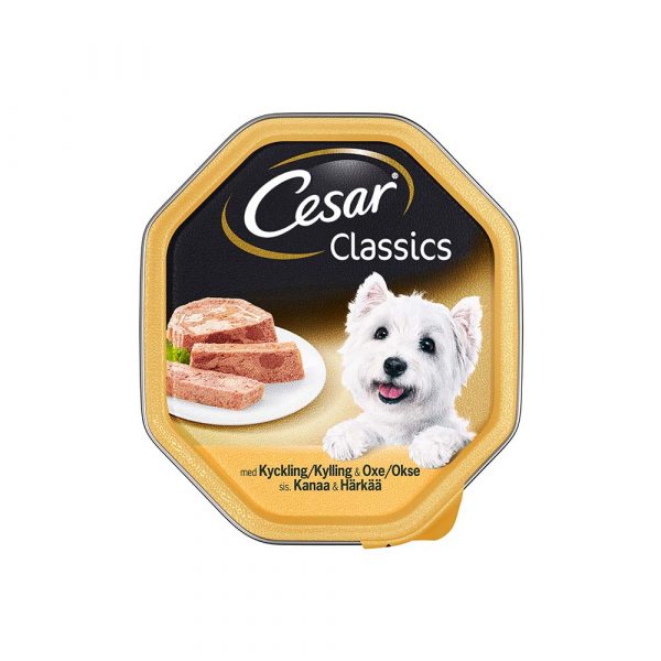 Cesar-ateriassa on koirallesi tärkeää lihaa jopa 60 %. Ravitseva ateria on valmistettu kaikkein parhaimmista raaka-aineista. Se sisältää kaikki perusterveen koiran päivittäin tarvitsemat ravintoaineet ja energiatarpeen. Herkullinen Cesar kana & häränliha tekee koirasi päivästä ainutlaatuisen!