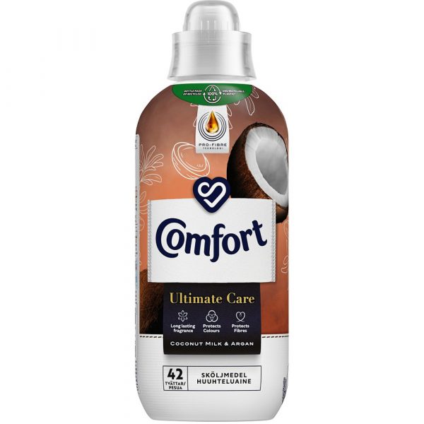 Comfort Coconut Milk & Argan on huuhteluaine, joka tuo pyykkiisi pehmeyttä ja ihanan kookosmaidon ja arganöljyn tuoksun. Comfort-huuhteluaine hoitaa tekstiilejäsi, jotta voit nauttia niistä pidempään!