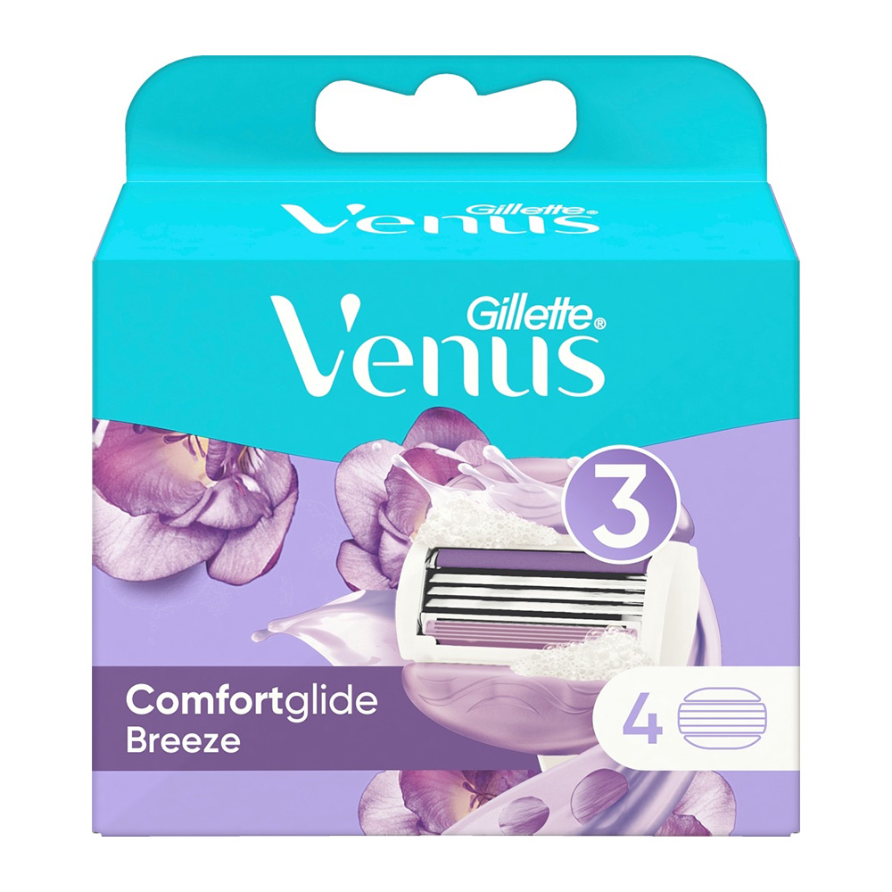 Venus Comfortglide Breeze 4kpl teräpakkaus. Breeze on kolmiteräinen, raikkaan tuoksuiset vartalovoita vapauttavat paksut geelityynyt. Kaikki Venus terät sopivat kaikkiin Venus -höyliin.