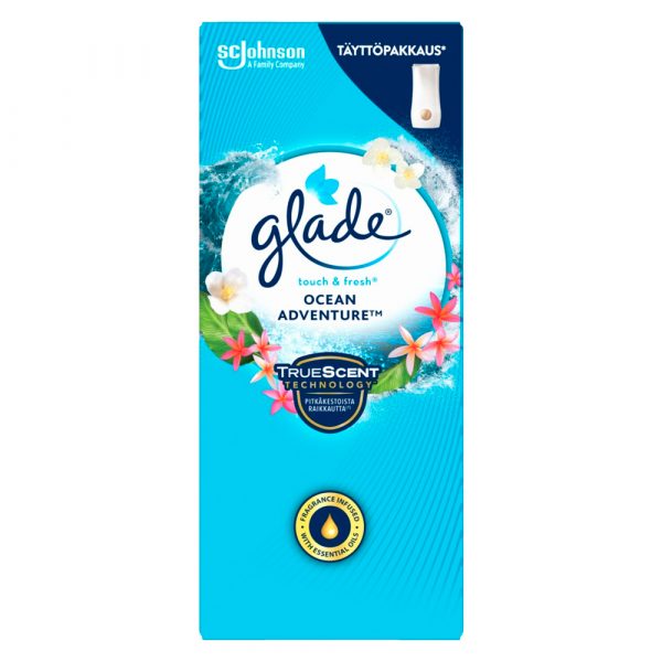 Glade One Touch ilmanraikastimen täyttöpakkaus. Glade One Touchilla raikastat huoneilman aina tarvittaessa yhdellä painalluksella.