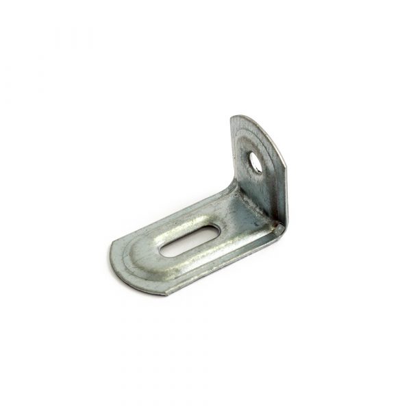 Teräksinen kalustekulma. 41 x 25 x 23 mm. Mukana ruuvit.