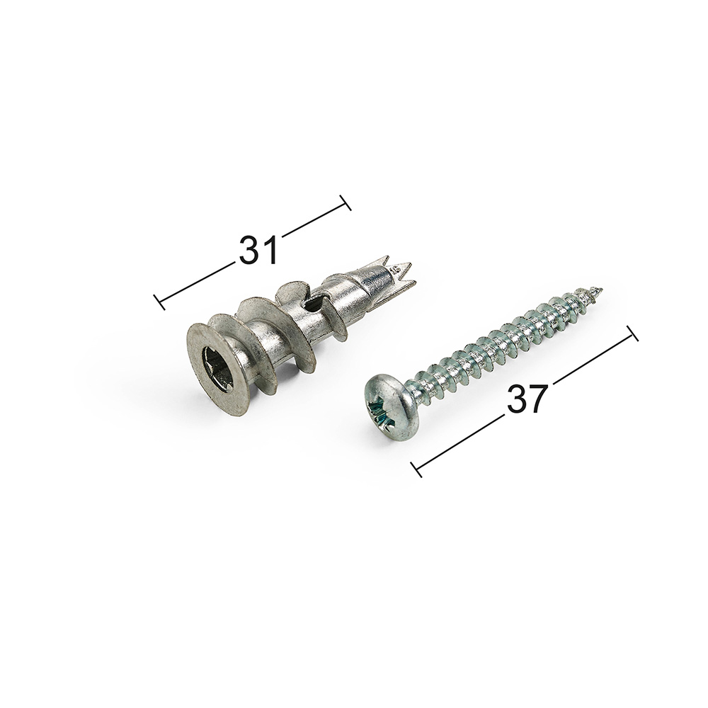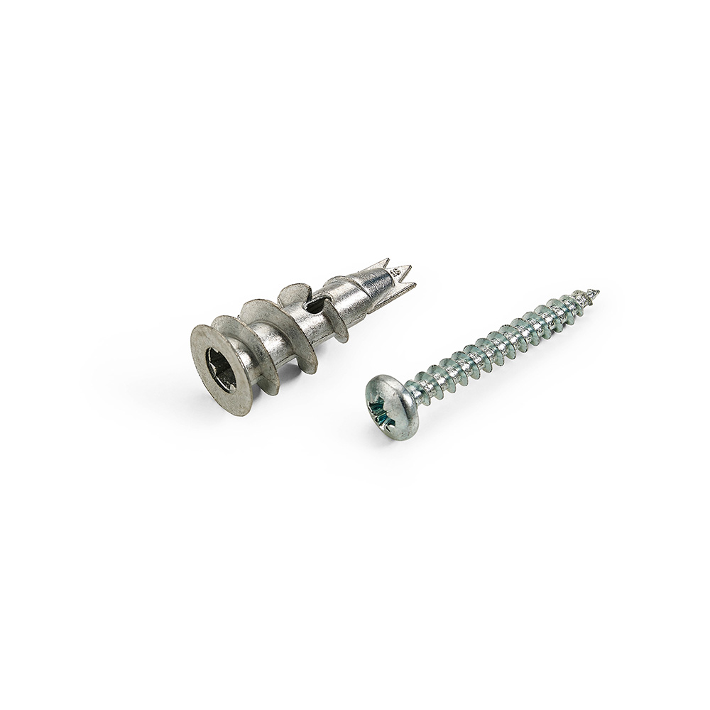 Kipsilevyankkuri sinkkiä, ruuvi teräksestä. Kiinnitykset mm. kipsilevyihin ja lastulevyihin.