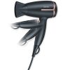 Matkakuivaimen avulla kuivaat hiuksesi nopeasti ja hellävaraisesti. Laitteen kahvaosa on kokoontaitettava, mikä säästää tilaa matkalaukussa. Tekniset tiedot: Ergonominen ja kääntyvä kädensija Kaksi lämpö-ja nopeusasetusta Lisäksi kylmäpuhallus Ioniteknologia neutralisoi hiuksia vapauttamalla niihin negatiivisesti varautuneita ioneita. Se estää hiusten sähköistymistä. Lisäksi se säilyttää hiusten kiillon ja suojaa niitä kuivumiselta Automaattinen ylikuumenemissuoja Irrotettava ja käännettävä ilmankeskitin Verkkojännite on valittavissa (100-120 V tai 220240 V) Teho 1200 / 1600 W Käytännöllinen ripustuskoukku Suodatin irrotettavissa puhdistusta varten