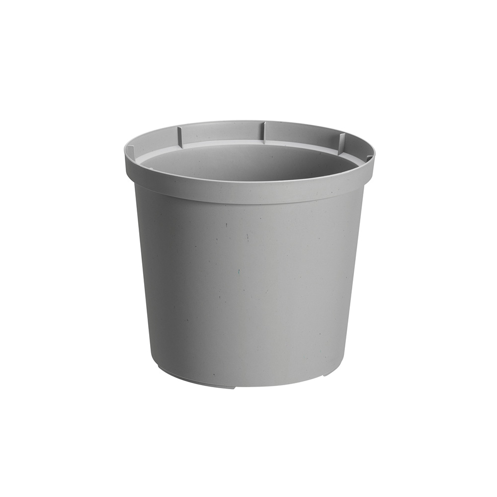 Klassinen istutusruukku tyhjennysaukoilla. Helppo liikutella, pitää hyvin kosteutta ja kestää talvella jopa ulkokäyttöä. Ruukunpohjan tyhjennysaukkojen ansiosta ylimääräinen vesi valuu pois. Pienet korokkeet edesauttavat ilmankiertoa. Valmistettu kierrätetystä muovista.