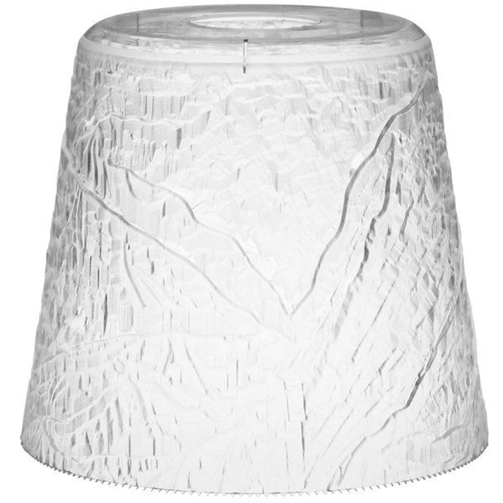 Kestävä muovista valmistettu lyhty ei sula vaikka lämpö olisi plussan puolella. Kaunis huurrettu pinta. Mitat: Korkeus 20 cm, alareunan halkaisija 22 cm, yläreunan halkaisija 16 cm. Vain ulkokäyttöön.