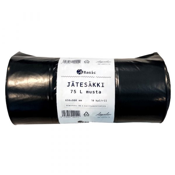 100% kierrätysmateriaalista valmistettu musta Jätesäkki