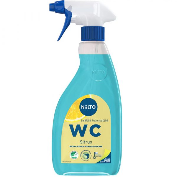 Kiilto WC Sitrus Biohajoava Puhdistussuihke puhdistaa tehokkaasti WC-tilan. Suihke sopii WC-istuimen ja sitä ympäröivän lattian, seinien ja käsienpesualtaan puhdistamiseen. Puhdistussuihke sisältää hajunsyöjää, joka poistaa tehokkaasti epämiellyttävät tuoksut, jättäen jäljelle puhtaan raikkaan sitruksen tuoksun.
