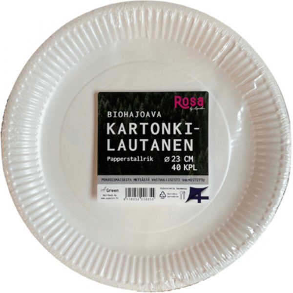 Matala 23cm kartonkilautanen, biohajoava lakkapinta.