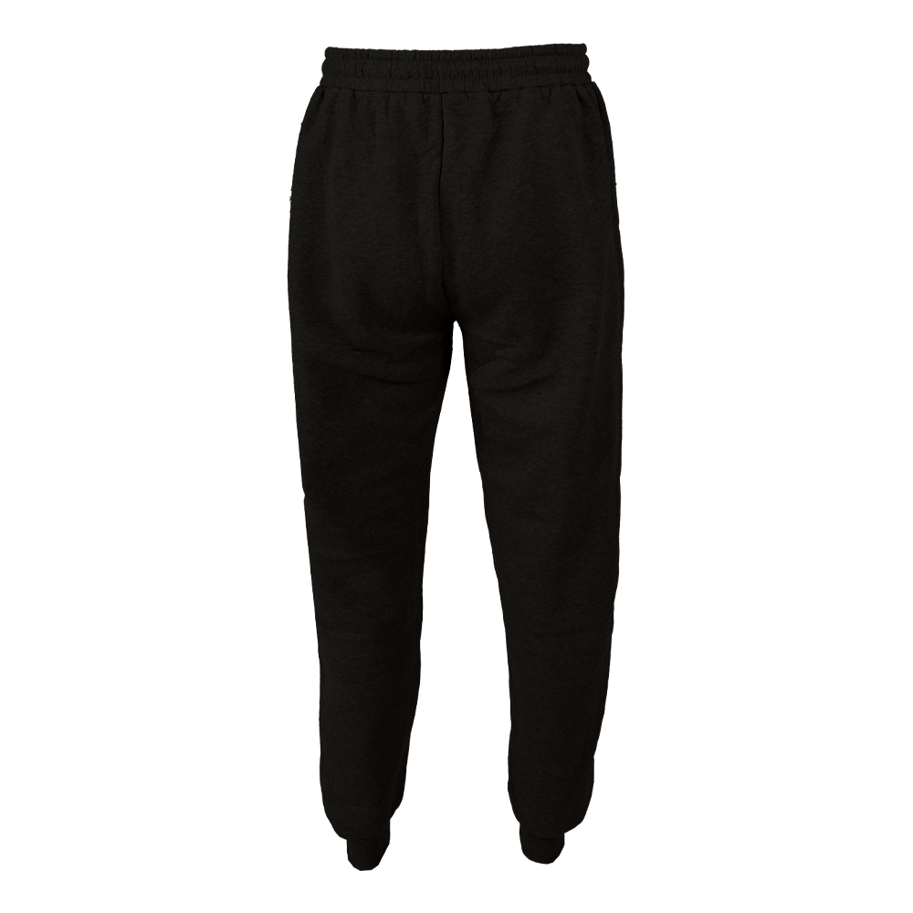 Mustat collegehousut vetoketjutaskuilla. Vyötäröllä nyörikiristys. Resorilahkeet. Materiaali 100% polyesteri. Pesu 30 asteessa samansävyisten kanssa.