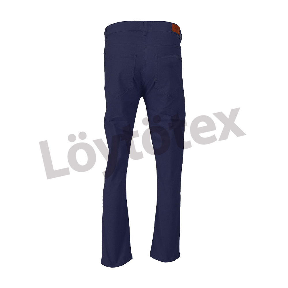Tyylikkäät ja mukavat miesten stretch-twill housut arkeen ja vapaa-aikaan. Navy väri ja siisti leikkaus sopivat moneen tilanteeseen. Joustavat materiaalit tarjoavat hyvän käyttömukavuuden. Materiaalit: 98% puuvilla ja 2% lycra. Pesu 40 asteessa saman sävyisten kanssa. Ei rumpukuivausta.