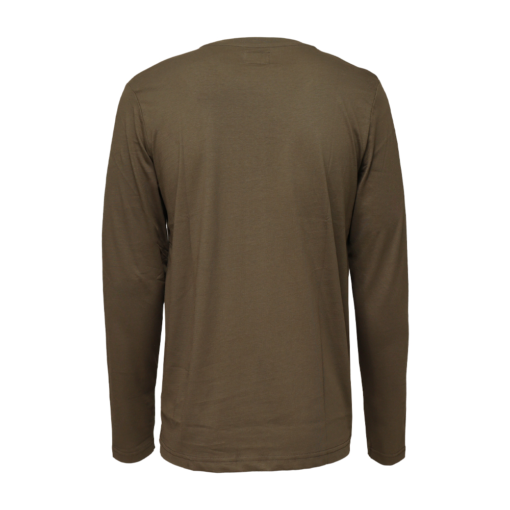 James Original pitkähihainen pusero värissä: oliivi. Etuprintti. Vasemmalla paidan helmassa brändin logo. Materiaali 100% puuvillaa. Pesu 40 asteessa.