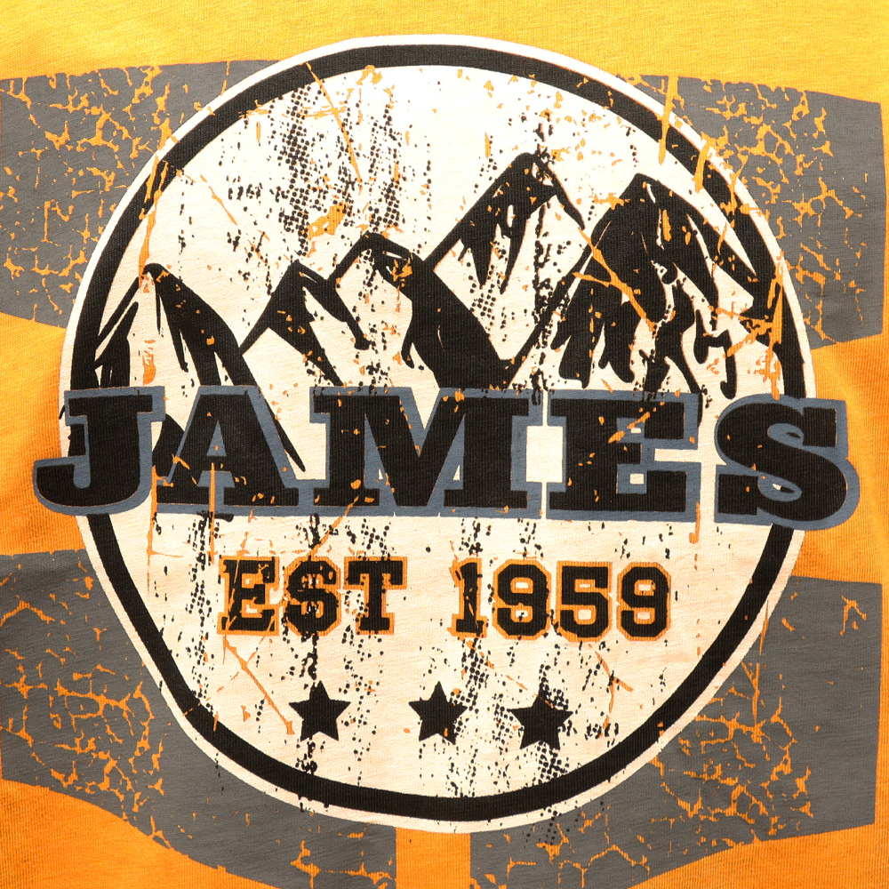 James Anakie T-paita värissä: keltainen. Etuprintti. Vasemmalla paidan helmassa brändin logo. Materiaali 100% puuvillaa. Pesu 40 asteessa.