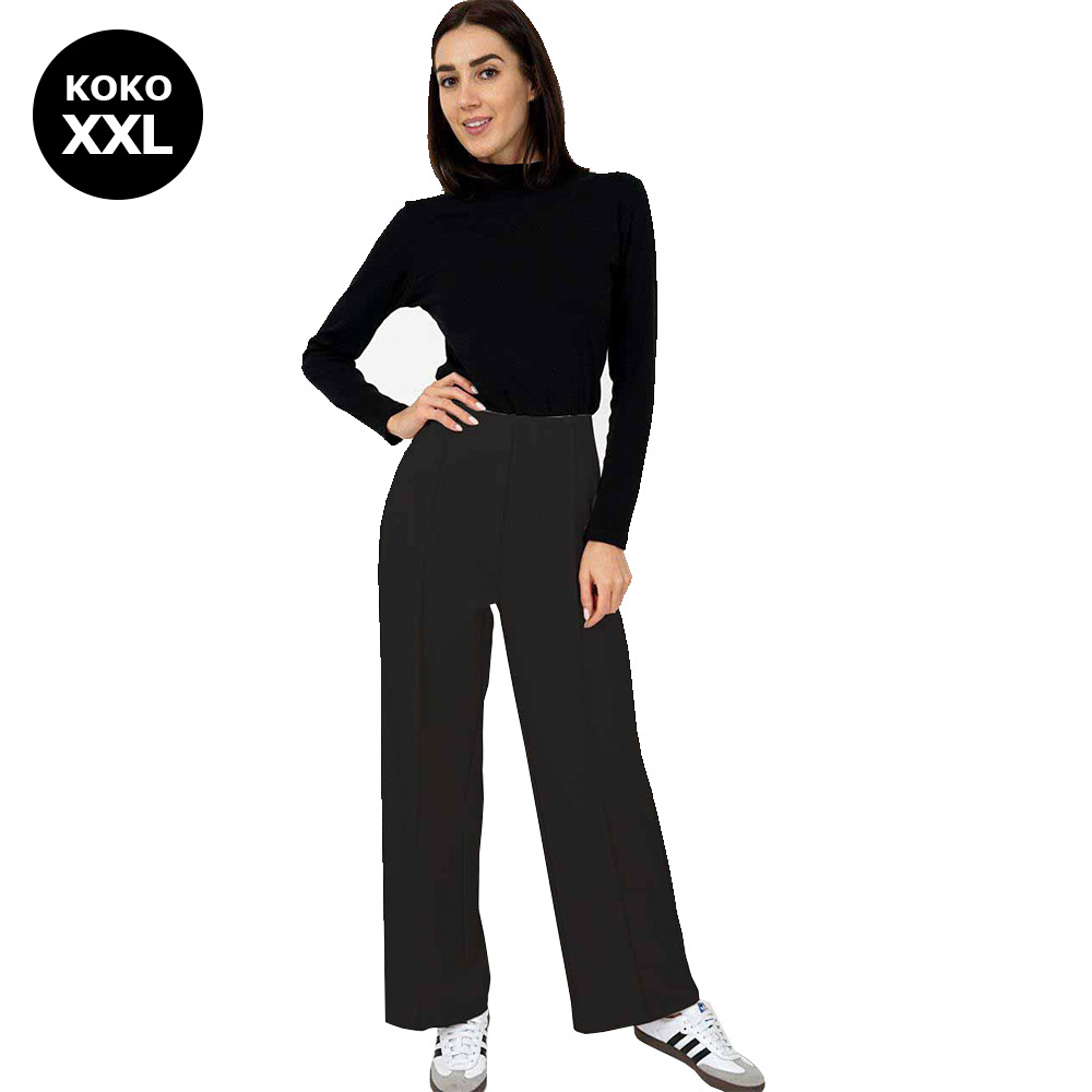 Naisten suoralahkeiset housut. Materiaali: 94% polyesteri ja 6% elastaani.