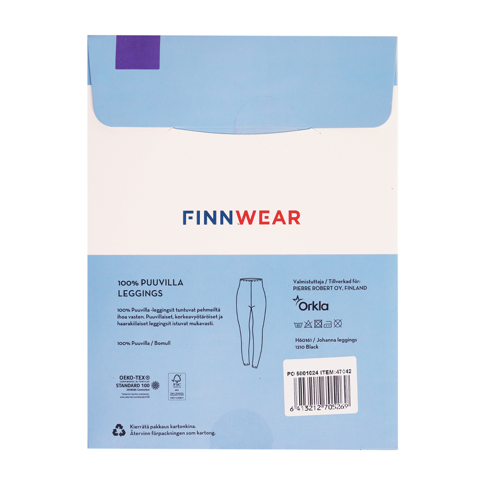 Finnwear Johanna – leggingsit tuntuvat pehmeiltä ihoa vasten. Puuvillaiset, korkeavyötäröiset ja haarakiilaiset leggingsit istuvat mukavasti. Materiaali 100% puuvillaa.