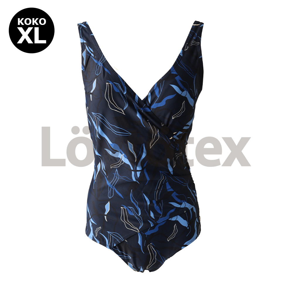 Naisten sininen uimapuku. Materiaali: 82% kierrätetty polyamidi ja 18% elastaani. Pesu 40 asteessa saman sävyisten kanssa. Ei rumpukuivausta.