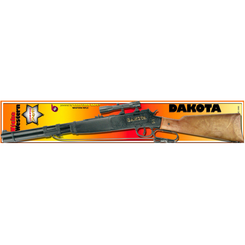 Lataa Dakota kivääri nauhanalli-panoksilla ja jännittävä leikki voi alkaa! Voit ampua jopa 100 kertaa yhdellä nauhanallilla. Sheriffin pyssy on 65 cm pitkä. Ikäsuositus 3+.