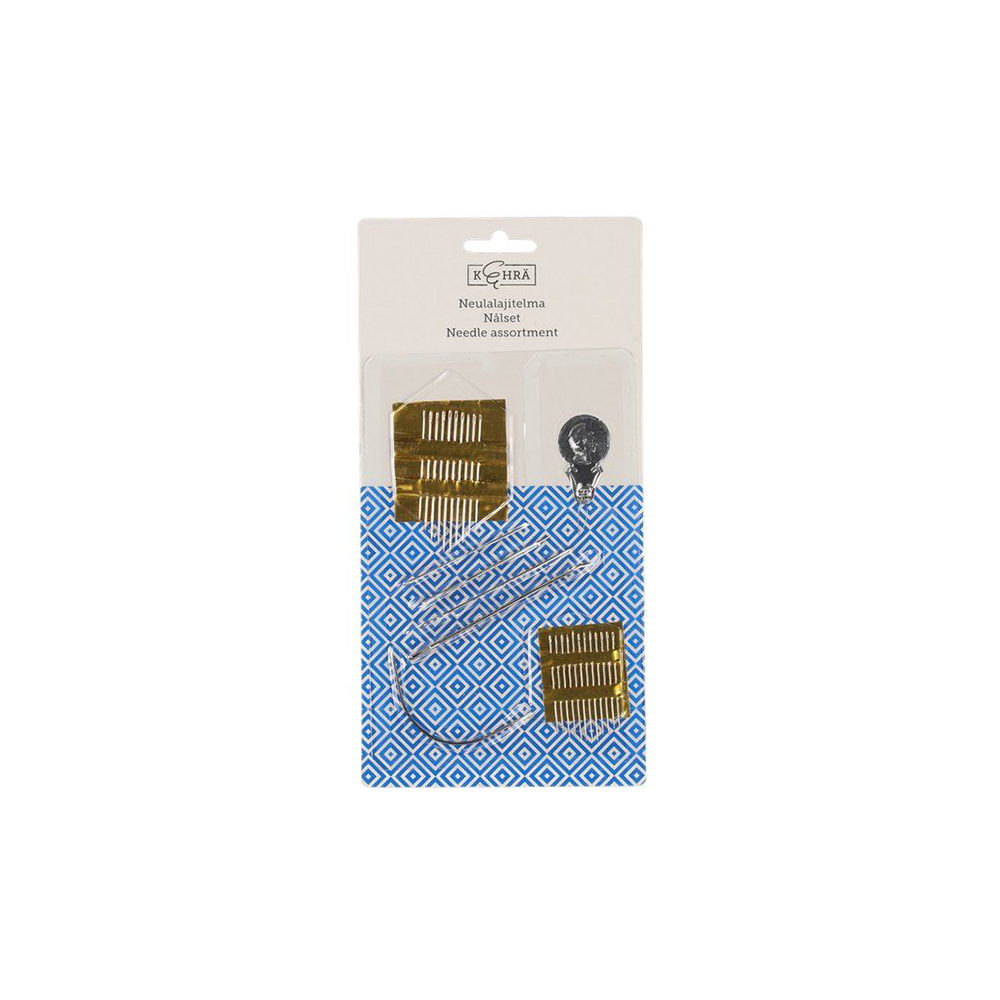 Neulalajitelma sisältää: Kanavaneula 6 kpl, parsinneula 3 kpl, ompeluneula 12 kpl, mattoneula, purjekangasneula, verhoiluneula, patjaneula ja langanpujottaja.