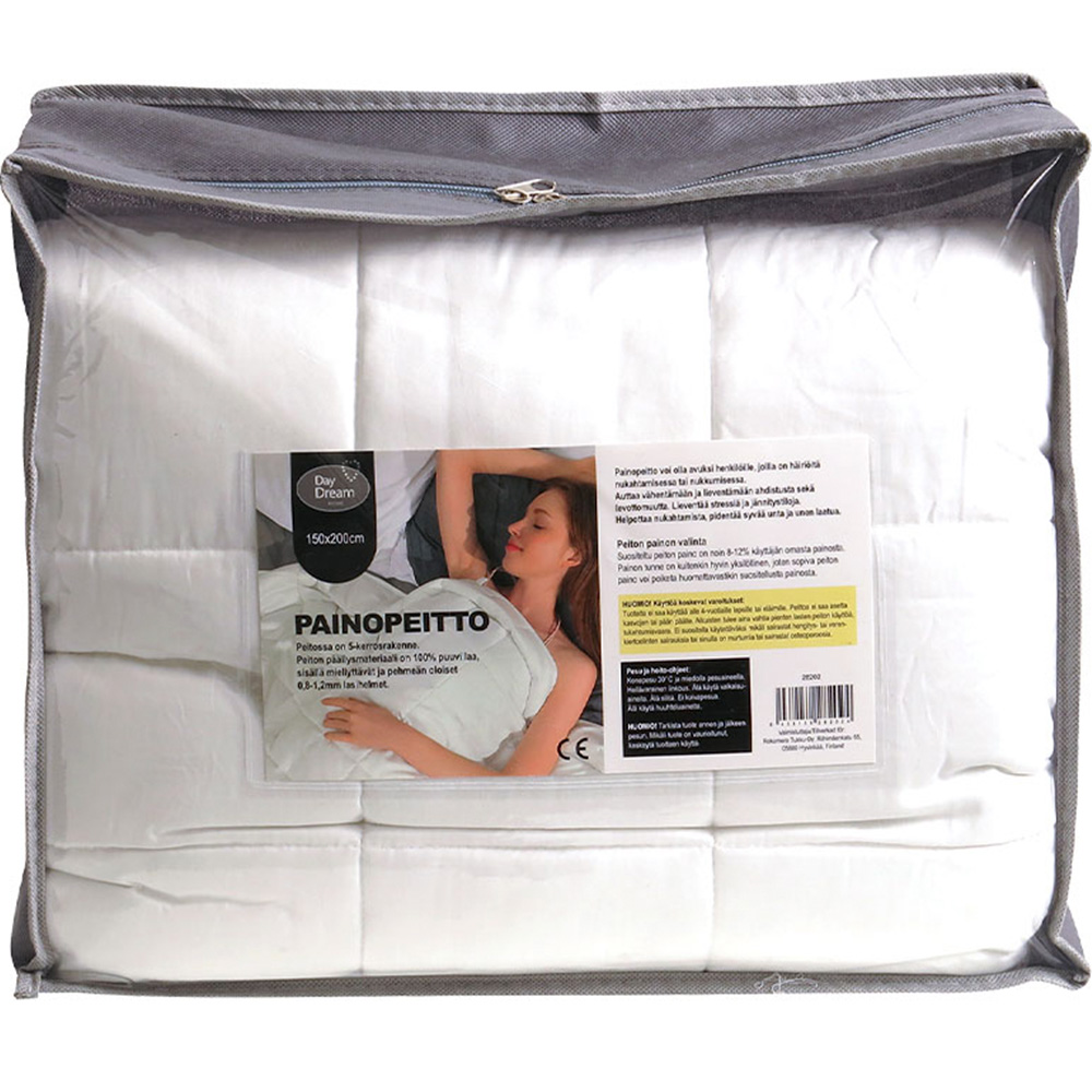 Peitossa on 5-kerrosrakenne. Peiton päällysmateriaali on 100% puuvillaa. Sisällä miellyttävänpehmeän tuntuiset 0,8-1,2mm lasihelmet. Suositeltu peiton paino on n. 8-12% käyttäjän omasta painosta. PAinon tunne on kuitenkin yksilöllinen.