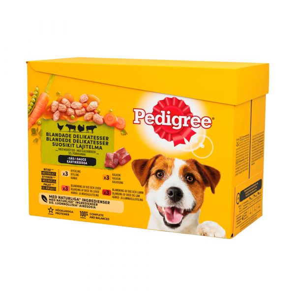 Pedigree® Adult kerta-annospussit sisältävät tuoretta lihaa, jota ei ole pakastettu tai käsitelty aikaisemmin. Näin tarjoat koirallesi aina laadukasta ja ravitsevaa ruokaa. Eri makuvaihtoehdoista koirasi saa vaihtelua aterioihinsa sekä tarpeelliset vitamiinit ja ravintoaineet. Lisäksi annokset tuoksuvat ja maistuvat mahtavilta kastikkeessa.