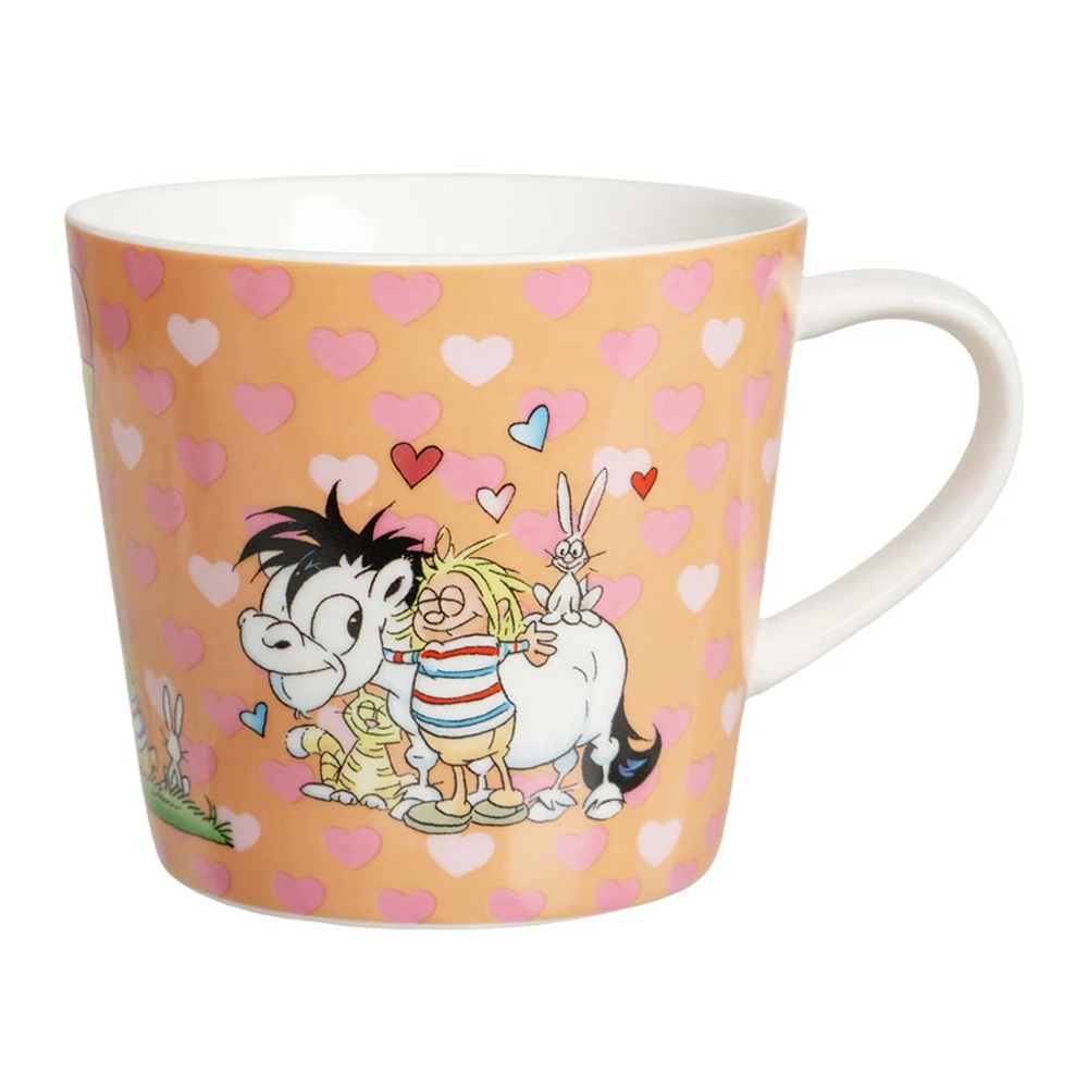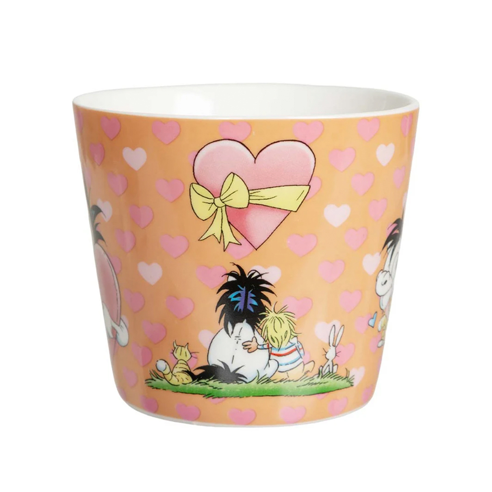 Lena Furbergin kuvittama ystävänpäivämuki, jonka tilavuus on 3,5 dl. Mukin kyljissä rakastettu Polle halaa pehmosydäntä ja hän viettää aikaa yhdessä ystävien kanssa. Taustalla on pieniä vaaleanpunaisia sydämiä. Kestää konepesun ja lämmityksen mikrossa sekä uunissa.