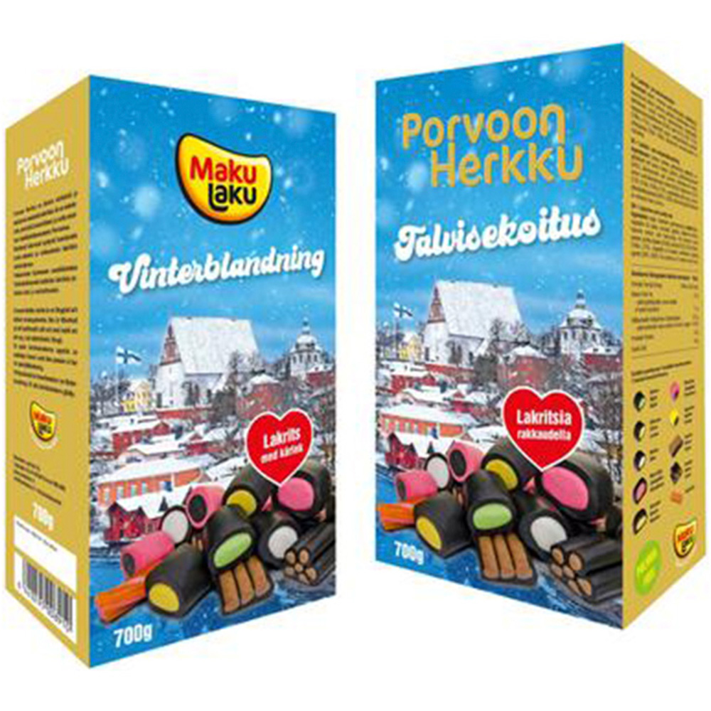 Porvoon Herkku on iloisen värikästä ja maistuvan makuista lakritsia. Se on valmistettu perinteitä kunnioittaen ja uutta oivaltaen. Maistuvat lakumaut syntyvät luontaisista raaka-aineista ja rakkaudesta lakritsin valmistukseen. Kymmenen suosittua lakritsimakua samassa Talvisekoitus- pakkauksessa.