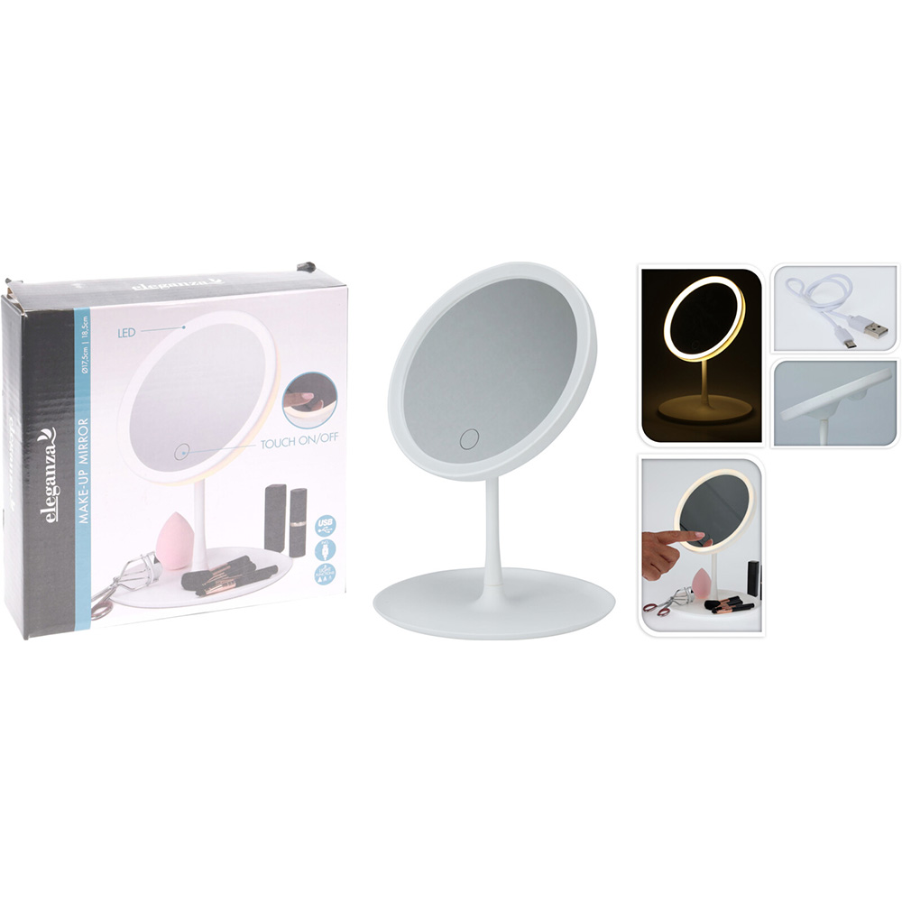 Tyylikäs ja käytännöllinen pöytäpeili, jossa on kirkas LED-valaistus ja tukeva jalusta.