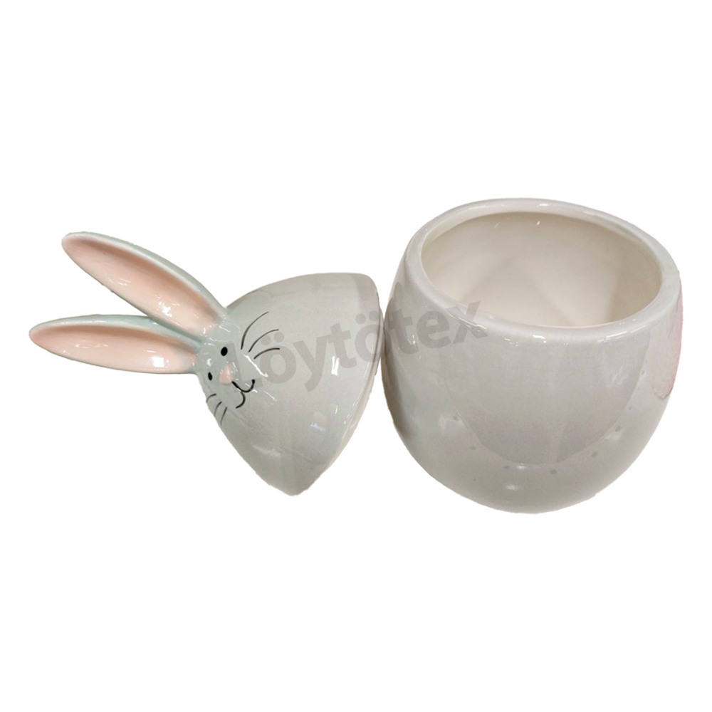 Tuo ripaus iloa ja järjestystä kotiisi tällä valloittavalla pupu-säilytysrasialla! Tämä munanmuotoinen keraaminen säilytysrasia on täydellinen pienten aarteiden, makeisten tai vaikkapa korujen säilytykseen. Rasian kansi nousee korvista, paljastaen tilan, jonne voit kätkeä kodin pienet tavarat. Kiiltävä harmaa viimeistely ja suloiset vaaleanpunaiset korvat tekevät siitä vastustamattoman sisustuselementin.