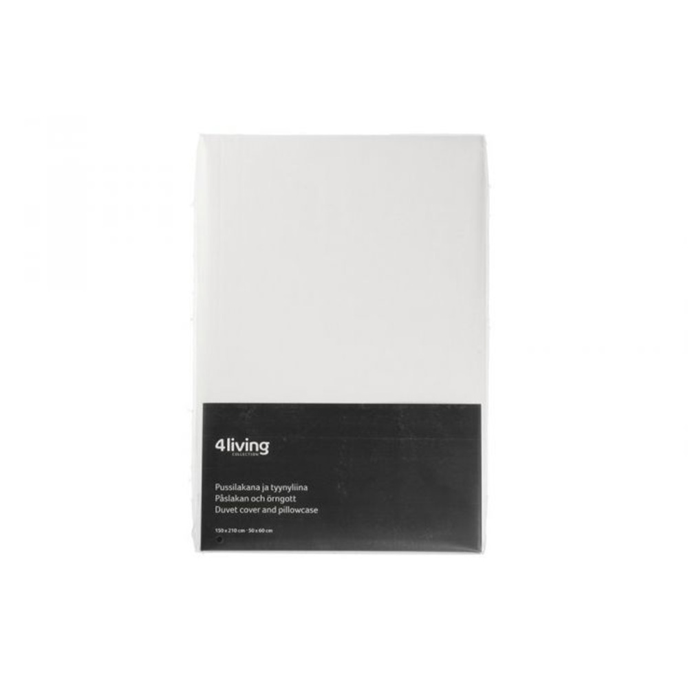 Yksivärinen pussilakanasetti, sis. pussilakanan 150 x 210 cm ja tyynyliinan 50 x 60 cm. Materiaali 100% puuvilla. Väri valkoinen. Pesu 60 asteessa. Pestävä ennen käyttöä.