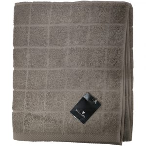 Beige vohvelipyyhe tuo luonnollista tyylikkyyttä kylpyhuoneeseen.