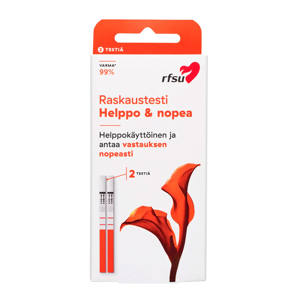 RFSU Raskaustestillä selvität nopeasti ja helposti oletko raskaana. Testi on samantyyppinen kuin neuvoloissa käytettävä testi. Testi pystyy mittaamaan erittäin alhaisia hormonipitoisuuksia ja on siksi erittäin luotettava.
