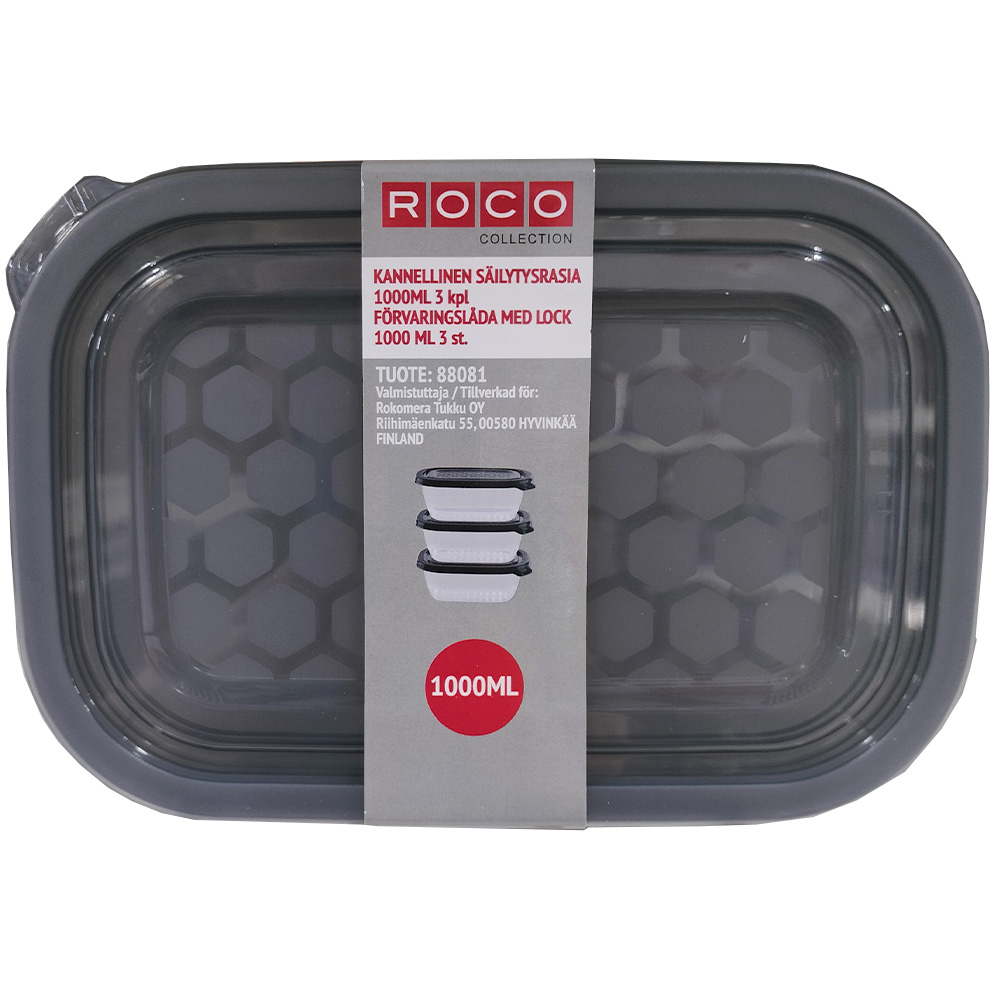 Kannellinen säilytysrasia 1000ml 3kpl. Rasiat pitävät kaiken säilytettävän tuoreena ja maittavana, niin jääkaapissa kuin pakastimessakin. Lämpötilasuositus: -20-+100C. Astiapesukoneen kestävä. BPA-vapaa.