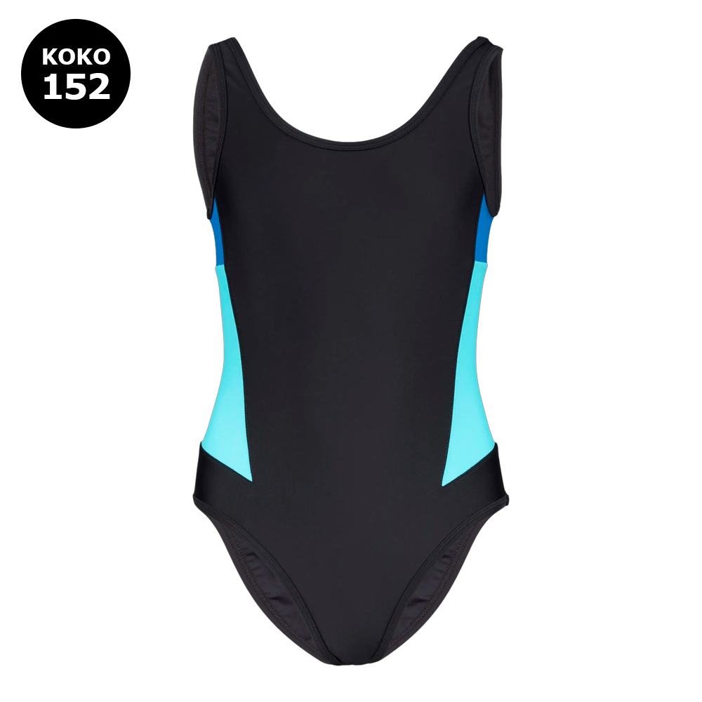 Finnwear lasten uimapuku U-mallisella selällä ja vuoritetulla etuosalla. Materiaali: 82% kierrätetty polyamidi ja 18% elastaani. Pesu 40 asteessa.