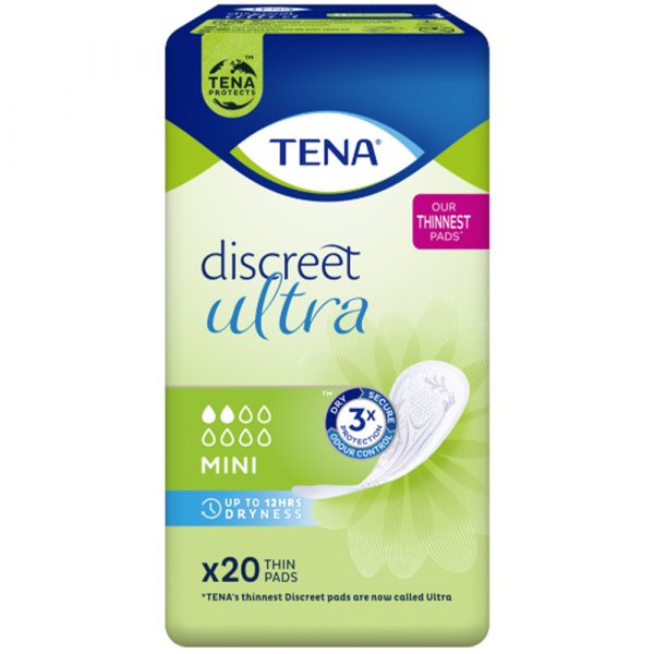 TENA Discreet Mini on huomaamaton ja varma suoja vähäiseen virtsankarkailuun. Tämä pehmeä suoja on suunniteltu päivittäiseen käyttöön naisille, joilla on herkkä virtsarakko. Kolmitehoinen suoja takaa, että vuodot, hajut ja kosteus imeytyvät nopeasti. TENA Discreet Mini sopii mainiosti odottamattomaan tiputteluun tai virtsankarkailuun: olo on aina varma ja suoja huomaamaton.