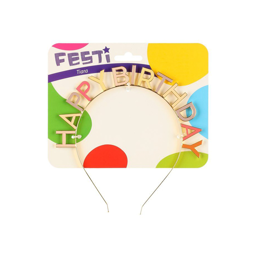 Happy Birthday tekstillä varustettu metallinen tiara päivänsankarille.