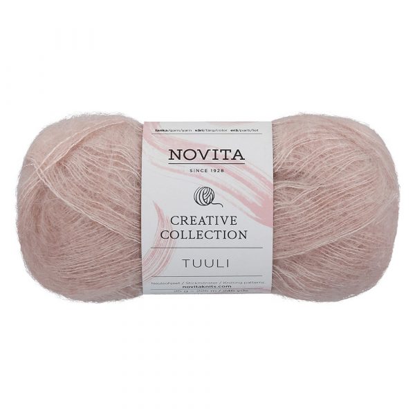 Ihanan pehmoinen Novita Tuuli -mohairlanka sopii käytettäväksi joko sellaisenaan tai yhdistettynä toiseen lankaan. Lanka sisältää 60% mohairia ja 40% viskoosia. Ylellisen pehmeän tuntuisesta langasta syntyvät niin asusteet kuin neulevaatteetkin. Puikkosuositus 3.5. Riittoisass 25 gramman kerässä on 225 metriä. Varovainen käsipesu.Langalle on myönnetty Oeko-tex STANDARD 100 -tuoteturvallisuusmerkki.