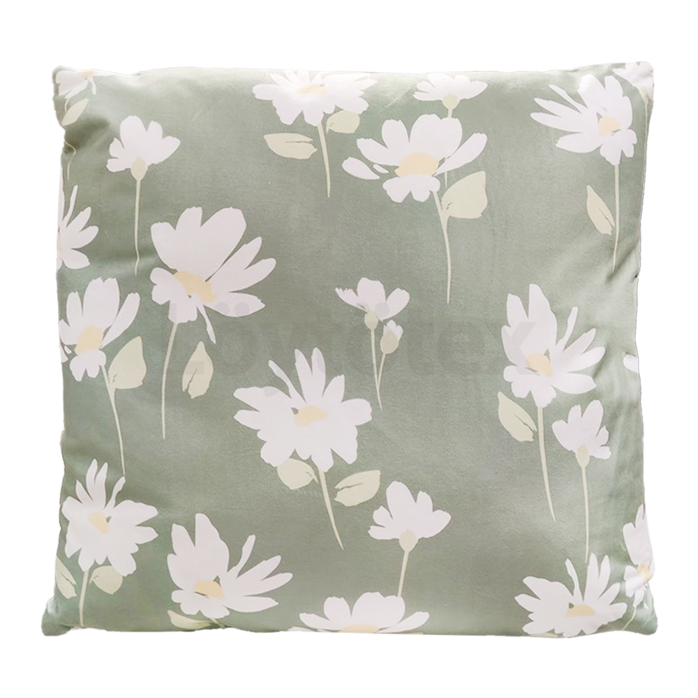 Pehmeä koristetyyny kukka printillä. Tyynyn mitat: 45x45cm.