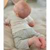 Dirkje lasten housut vihreillä raidoilla. Housuissa taskut ja vyötäröllä kiristettävät nyörit.