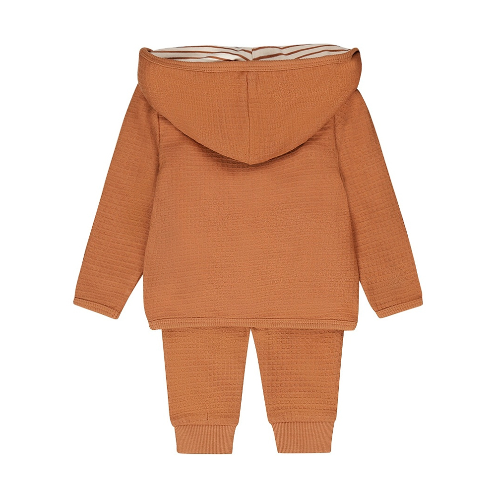 Tämä suloinen vauvojen Dirkje 3-osainen setti sisältää paidan sekä housut ja mätsäävän hupullisen takin. Paidassa on ruskea-valkoiset raidat ja printti etupuolella. Takki sekä housut on valmistettu pehmeästä vohvelikankaasta. Materiaalit: Takki & housut 100% puuvilla, paita 70% puuvilla 25% polyesteri ja 5% elastaani.