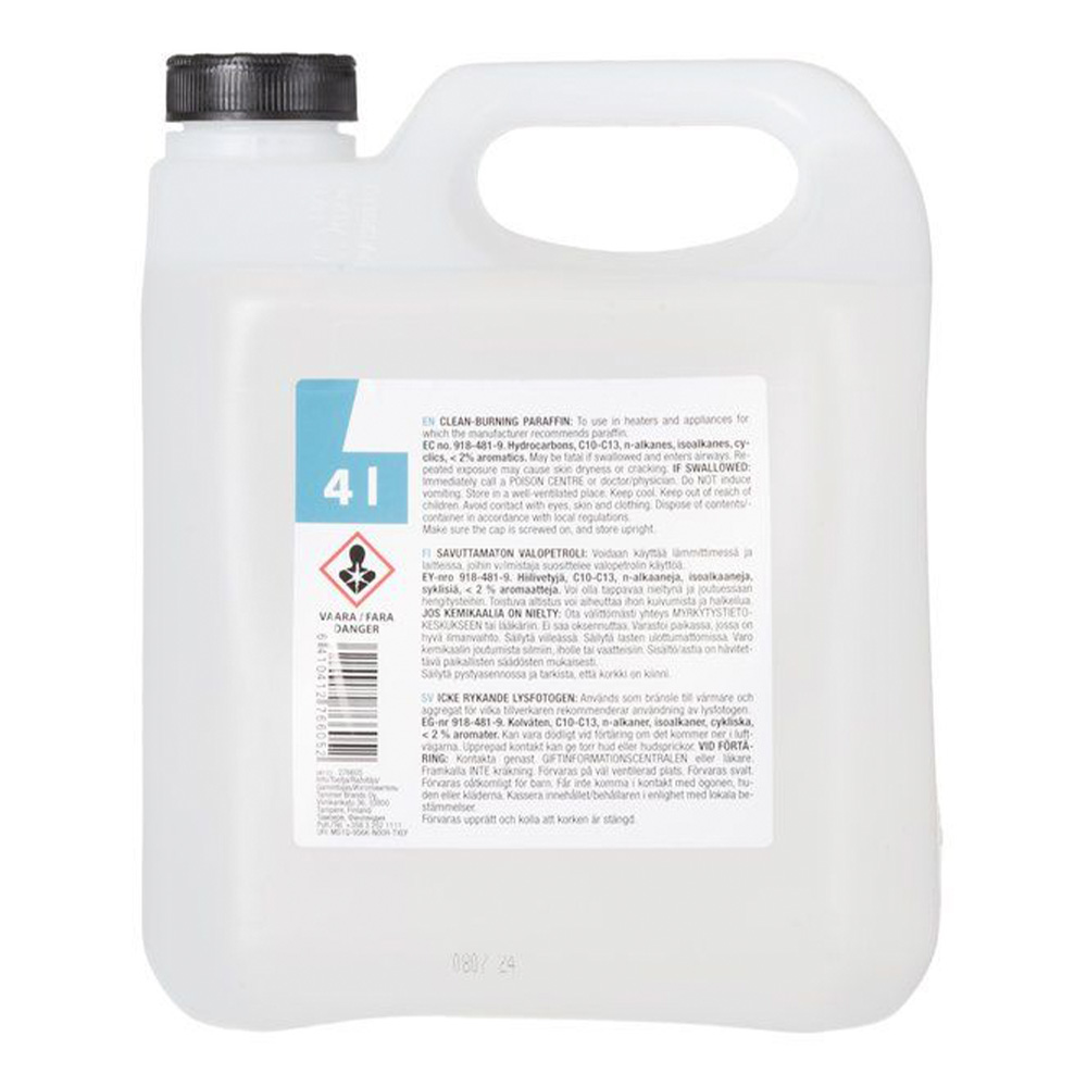Väritön, savuton ja pieniarominen. Nokiluku vähintään 35 mm. Leimahduspiste yli 61 astetta C (Menetelmä: ASTM D 93).