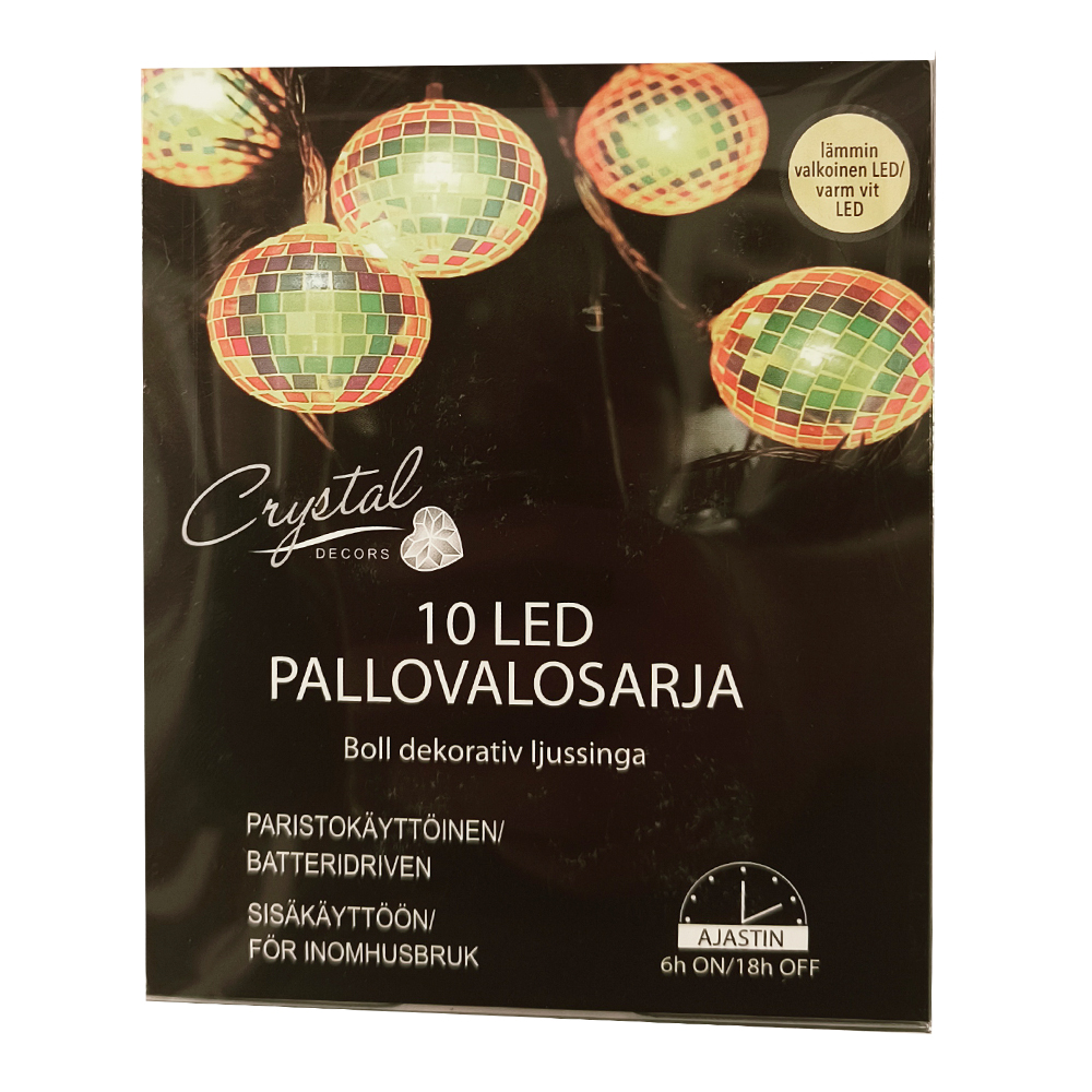 Halk.5cm muoviset peilimosaiikki pallokoristeet, lämmin valkoinen led, 2xAA -paristot,eivät sisälly Ajastin 6/18h