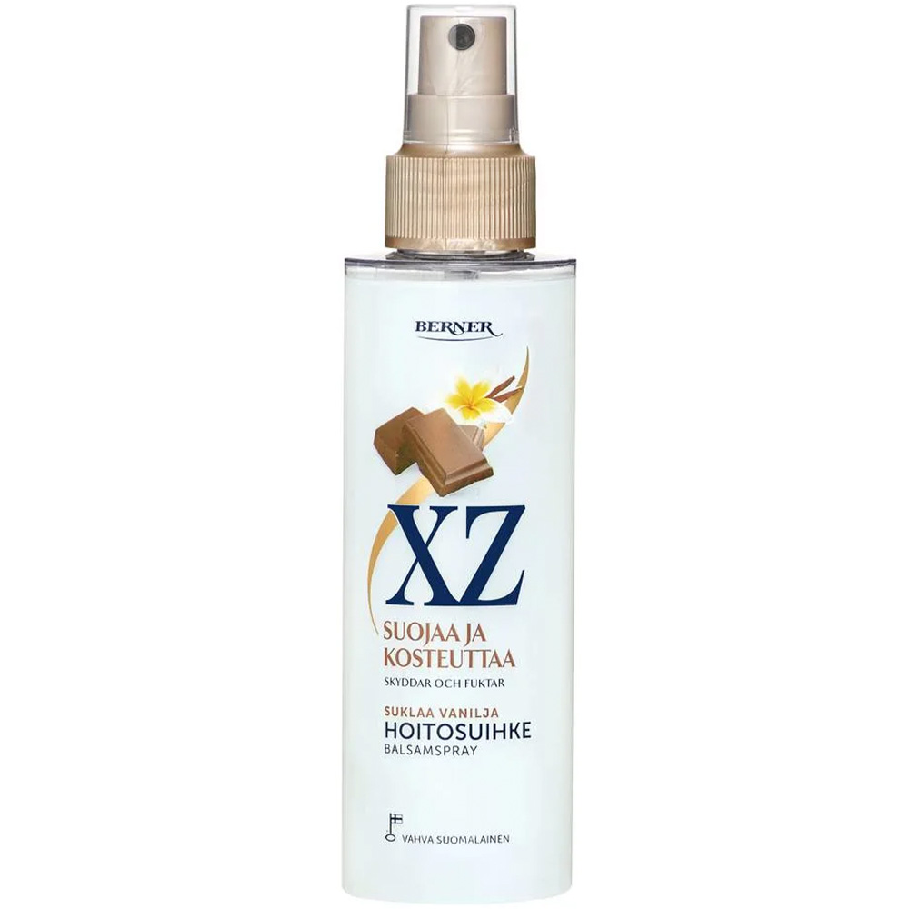 Kosteuttava XZ Suklaa Vanilja Hoitosuihke vähentää tehokkaasti hiusten sähköisyyttä ja antaa hiuksille kiiltoa parantaen samalla hiusten kammattavuutta. Sopii erityisesti kuiville ja rasittuneille hiuksille. Suojaa hiuksia myös ulkoisilta rasituksilta. Hiuksiin jätettävää hoitosuihketta voi käyttää joko sellaisenaan tai yhdessä hoitoaineen kanssa. Hoitosuihketta voi myös lisätä hiuksiin päivän mittaan. Hoitosuihke valmistetaan Heinävedellä. Tämä tuote sopii Curly Girl -metodiin.